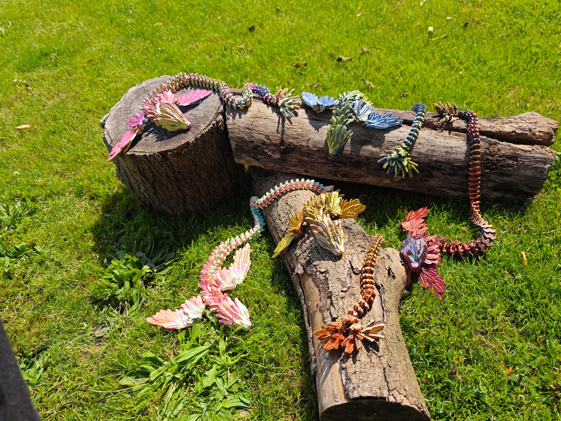 Die Farbvarianten „Farbverlauf“ können in ihren tatsächlichen Aussehen variieren, dafür nutze ich Filamente welche alle paar Meter die Farbe wechseln somit ist kein Drache identisch mit dem anderen, hier gilt also Abbildung ähnlich.