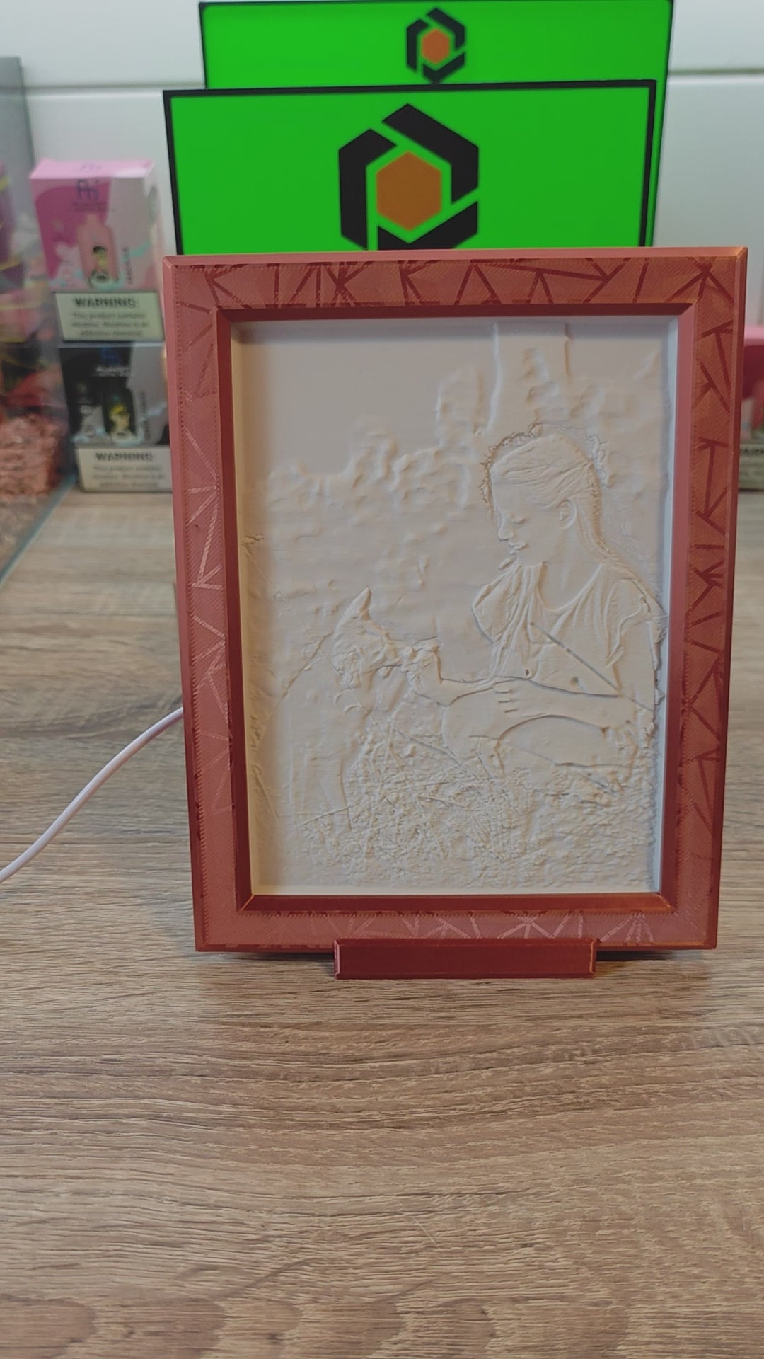 Ich biete ihnen hier einen echten Hingucker für ihre Anbauwand oder auch Wand, mittels 3D-Druck wird aus ihrem Foto ein Lithophane(Relief) erstellt. Unbeleuchtet ist es einfach ein weißes Relief ihrer Fotos, wird es aber von hinten beleuchtet entsteht ein beeindruckendes und detailliertes Bild.