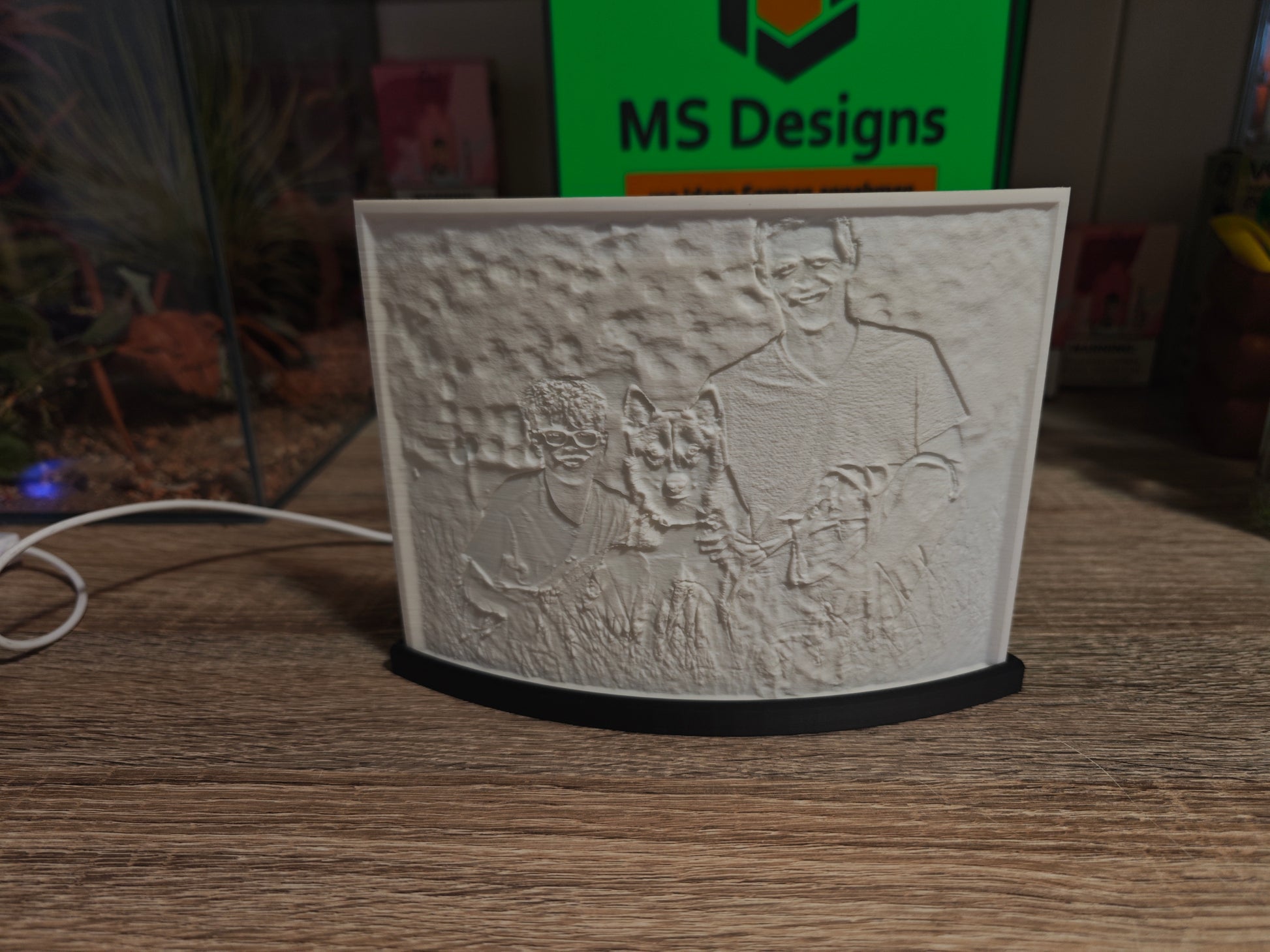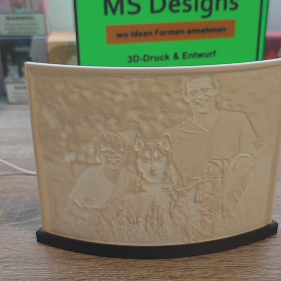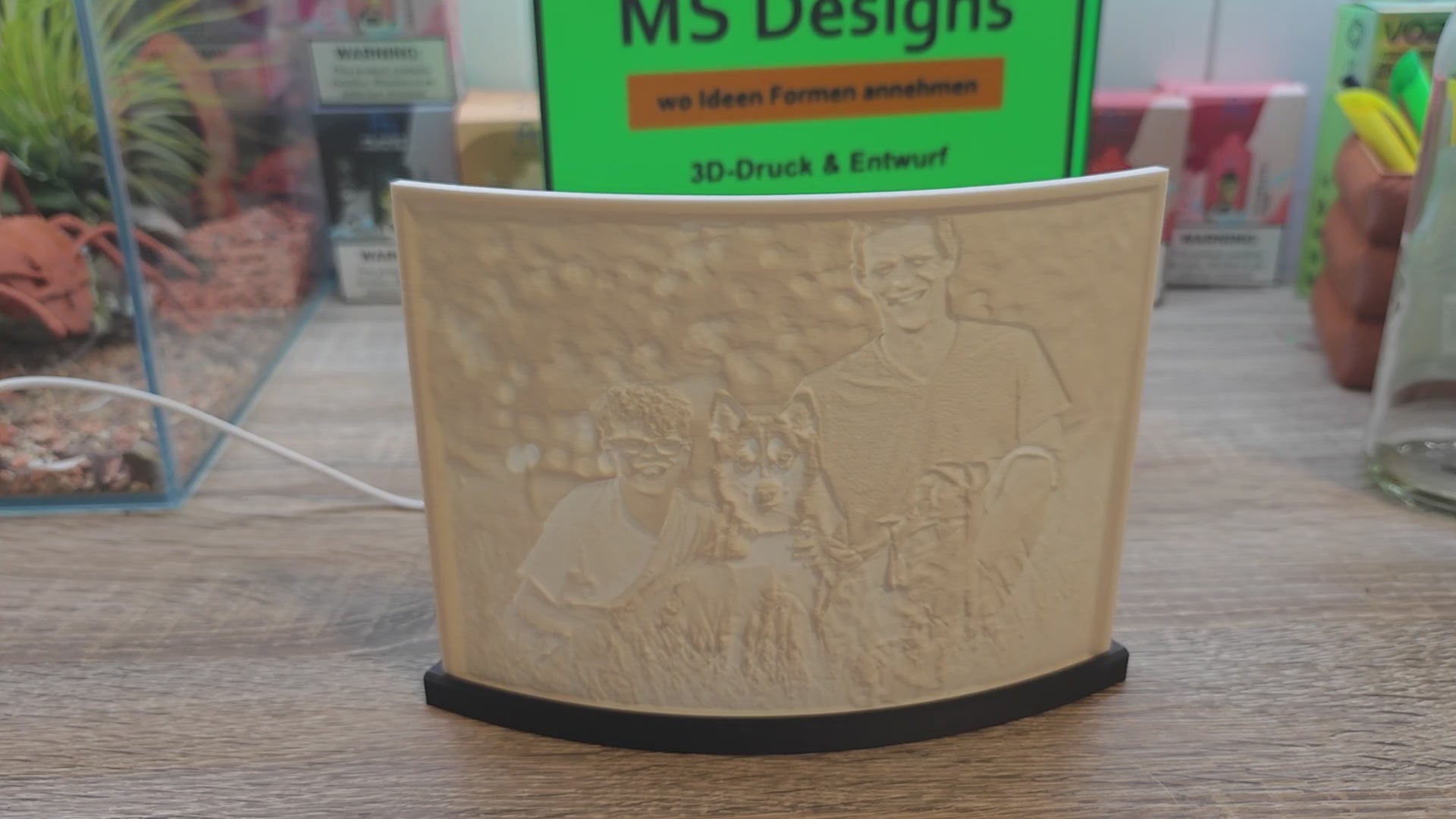 Ich biete ihnen hier einen echten Hingucker für ihre Wohnung, mittels 3D-Druck wird aus ihrem Foto ein Lithophane(Relief) erstellt. Unbeleuchtet ist es einfach ein weißes Relief ihrer Fotos, wird es aber von hinten beleuchtet entsteht ein beeindruckendes und detailliertes Bild.