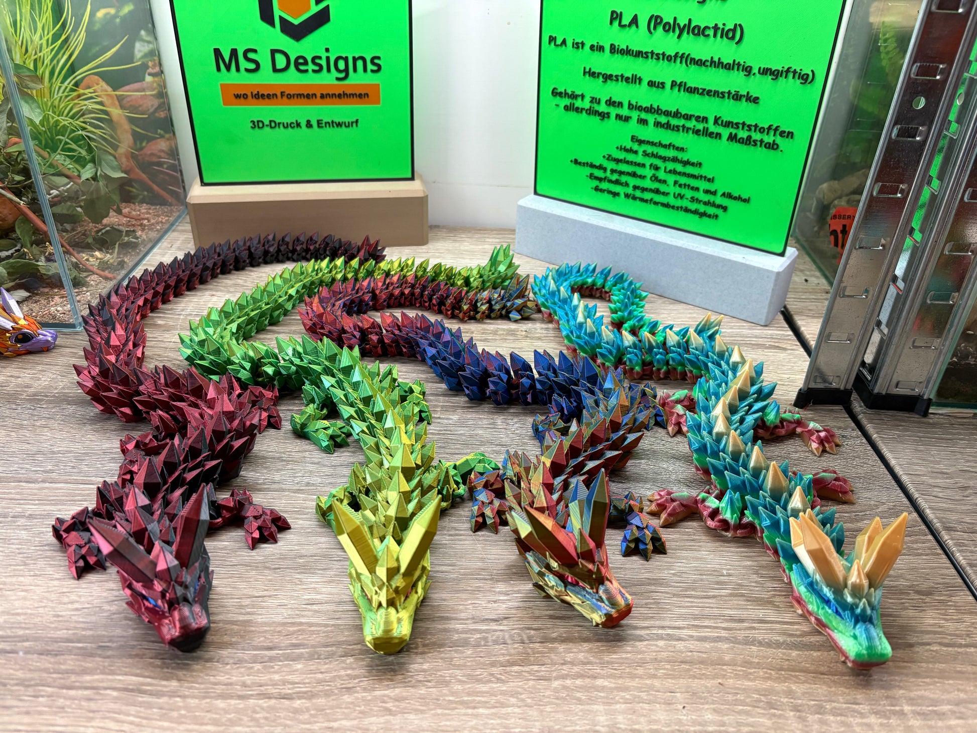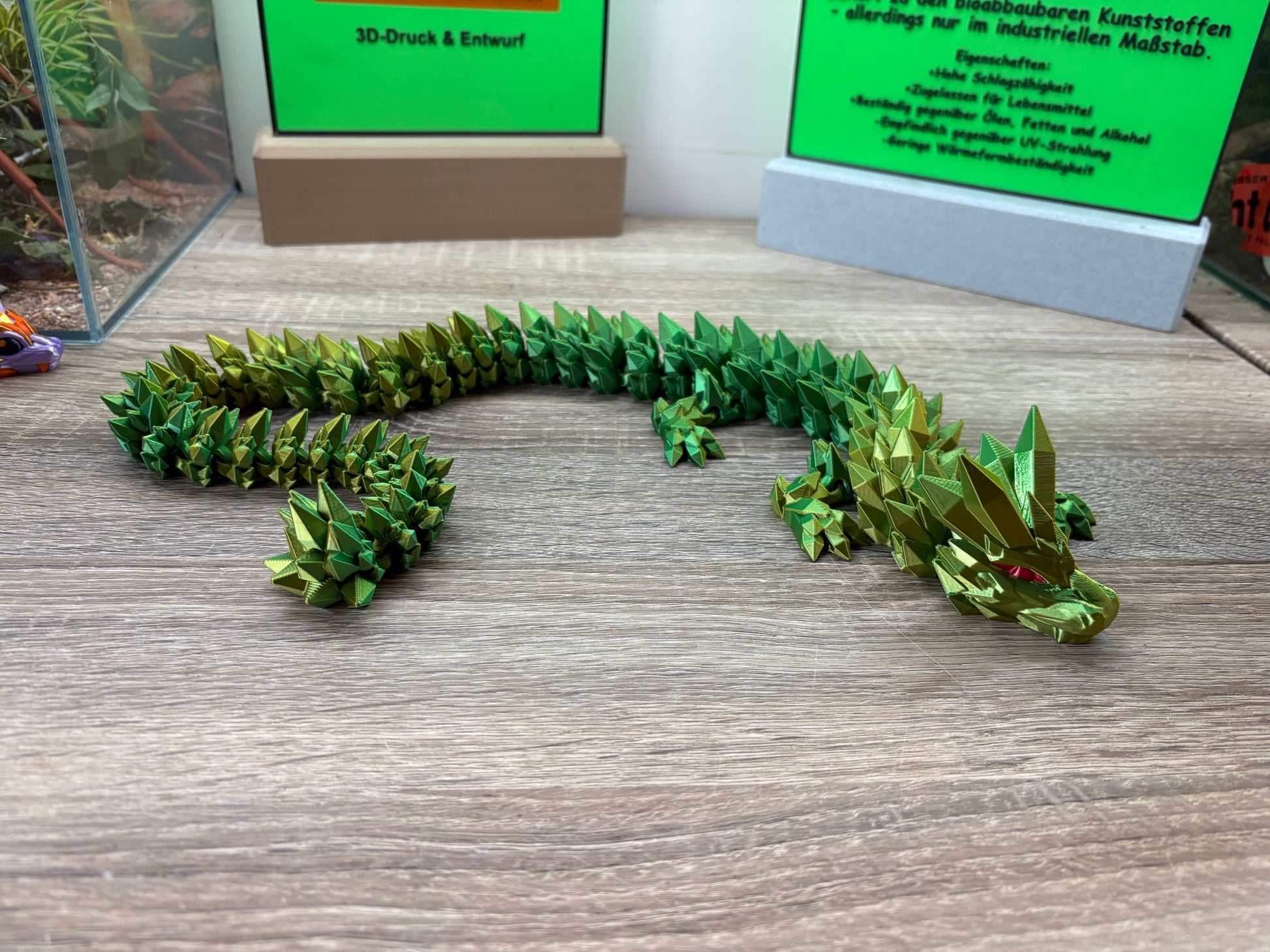 Ich biete ihnen hier einen Flexi Kristall Drachen an. Hergestellt wird er mittels 3D-Druck aus dem Bio-Kunststoff PLA. Der Drache hat eine Länge von 68cm, ist äußerst flexibel und robust. Ein echter Hingucker 😁. Erhältlich in verschiedenen Farben