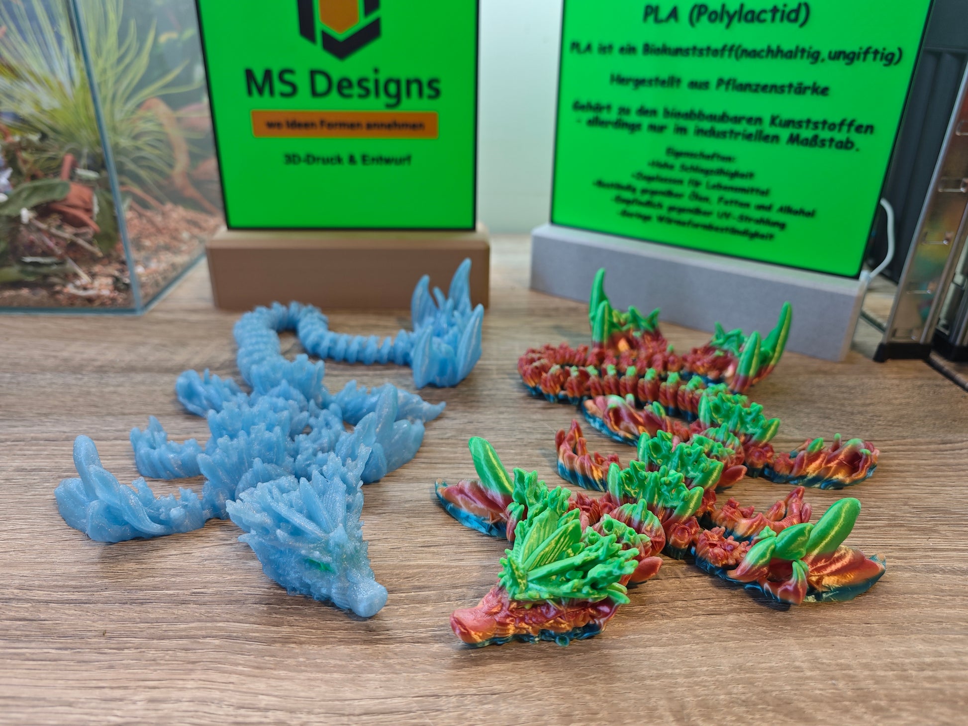 Ich biete ihnen hier wirklich einen sehr schönen Drachen aus dem 3D Drucker im Korallen Design an. Er ist in etwa 48 cm lang, sehr flexibel und robust. Erhältlich in verschiedenen Farben. Hergestellt wurde dieser aus dem Bio-Kunststoff PLA