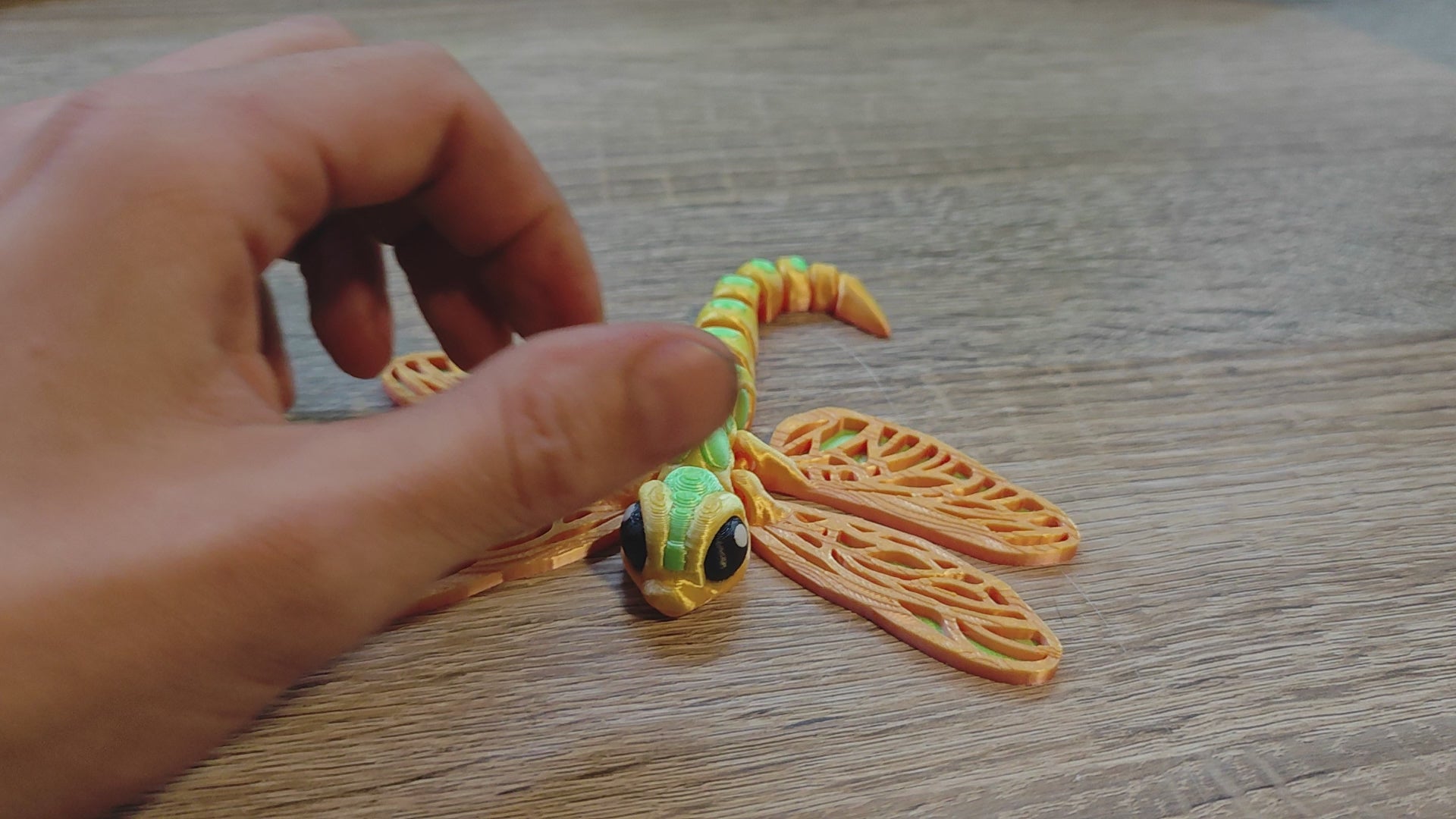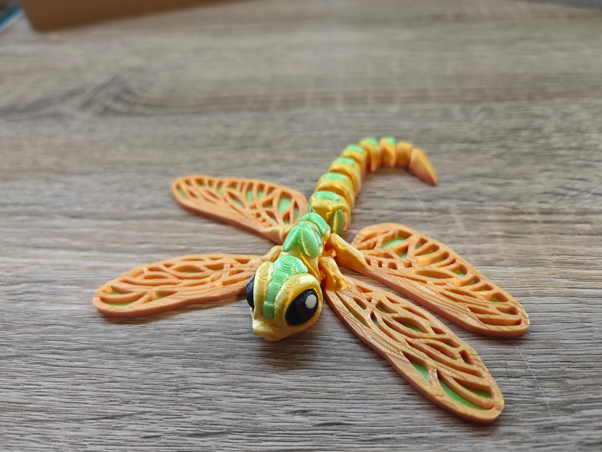 Zum Verkauf steht hier eine kleine, hübsche Libelle aus dem 3D Drucker, sie in etwa 13x13 cm und sehr beweglich. Gefertigt wurde diese aus dem Bio-Kunststoff PLA